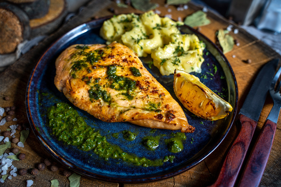 Сочная куриная грудка с картофельным пюре и соусом "Песто"
